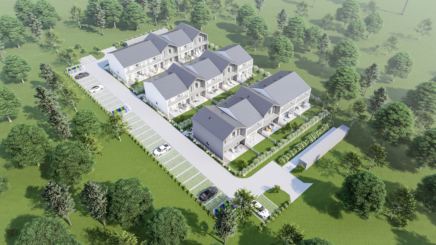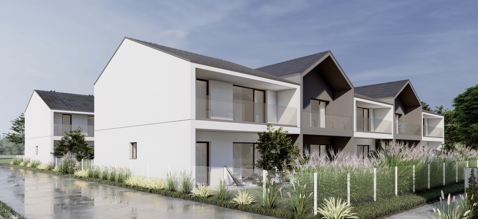 II etap Osiedla Wesoła to harmonijne połączenie funkcjonalności i estetyki. Kameralne osiedle składa się z 15 budynków w zabudowie szeregowej, zaprojektowanych w nowoczesnym stylu, z prostymi bryłami i elewacją w kolorach bieli oraz grafitu. Dwuspadowe dachy oraz detale wykończeniowe podkreślają elegancję całej inwestycji, pięknie wpisując się w otoczenie.