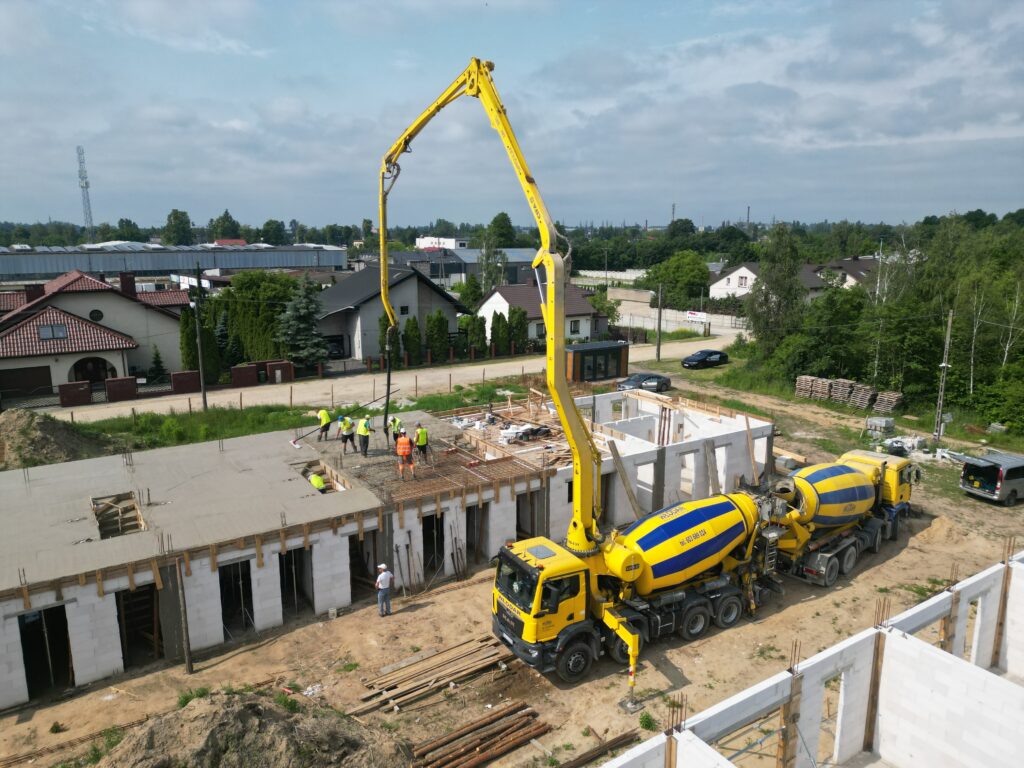 Rozpoczęto wylewanie stropów nad pierwszą kondygnacją – konstrukcja nabiera kształtów.